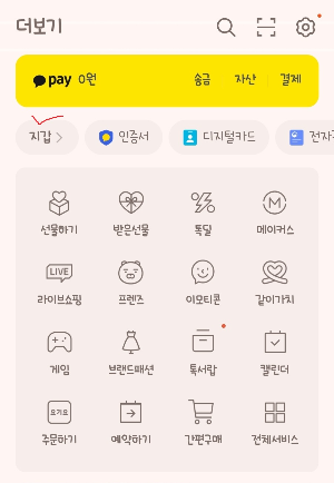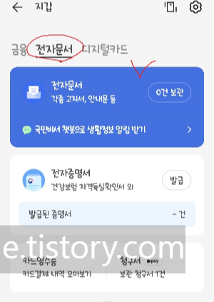 카카오톡 더보기에 들어가시면 지갑이 보입니다. 지갑 클릭! 전자문서 누르시면 아래 파랑색 전자문서 클릭!