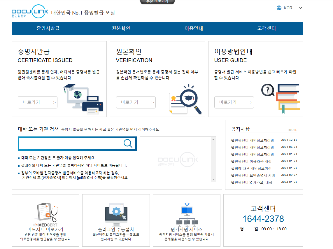 증명서 발급 전문 사이트 - 웹민원 센터