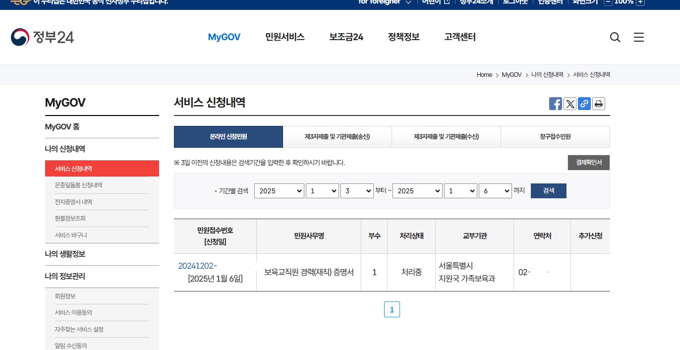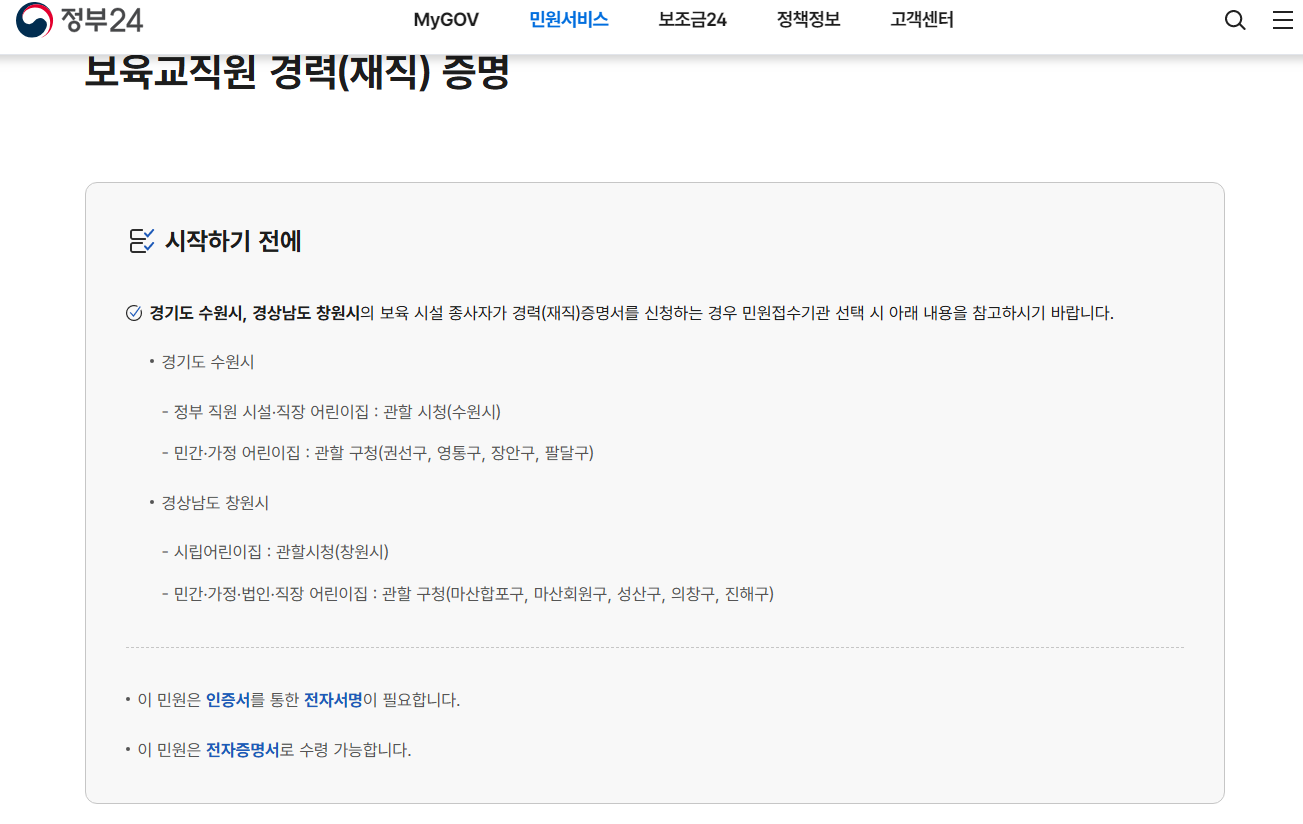 어린이집 경력증명서는 정부24에서 어린이집 경력증명서를 발급 받을 수 있습니다.