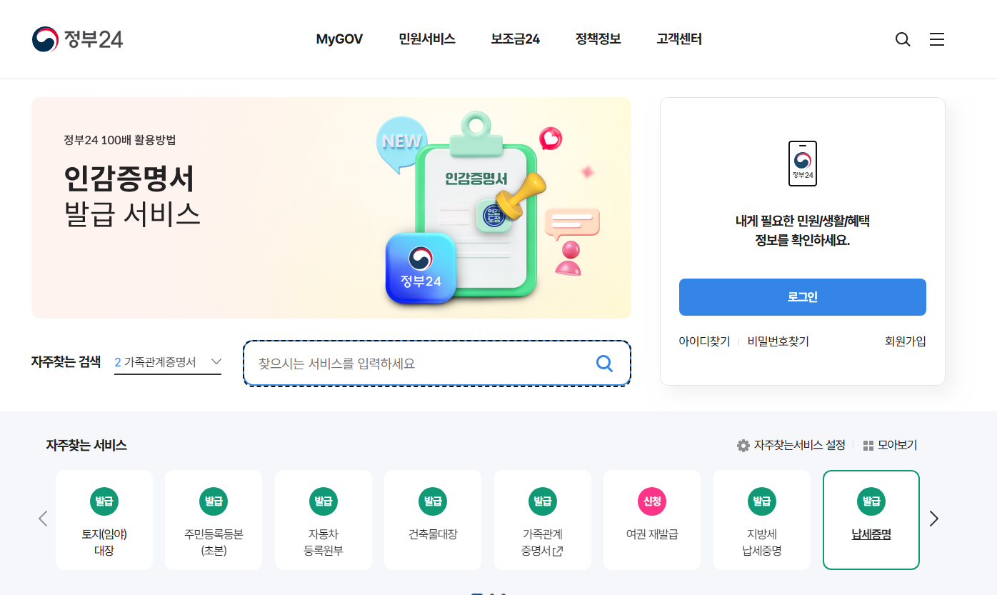 먼저, 정부 24 홈페이지로 갑니다. 인터넷에 정부24를 검색해서 들어가세요!!