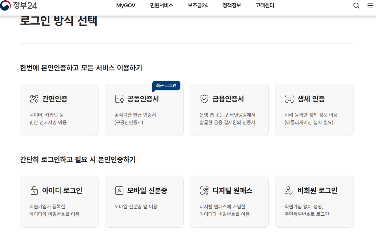 로그인 방식을 선택해 주시면 됩니다~ 간편인증 요즘에 아주 잘 사용하고 있어요!