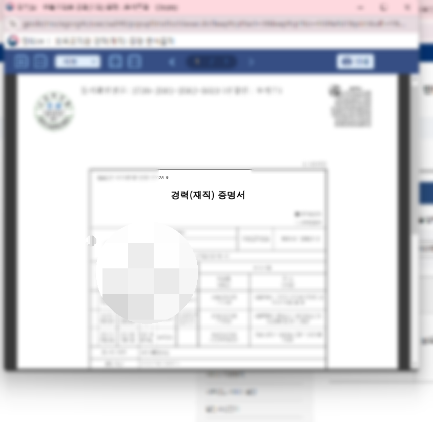 그러면 마지막 사진처럼 경력증명서가 뜹니다~ 인쇄 누르셔서 출력하심 끝이에요!!