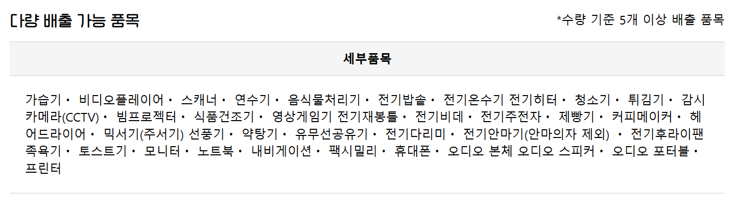 🔹 소형 가전은 최소 5개 이상이어야 무상수거 가능(단독으로 버릴 경우 해당되지 않음)