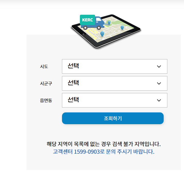 혹시 해당지역이 목록에 없다면 검색불가 지역이니 전화 ☎ 1599-0903으로 문의 하시면 된다고 합니다.