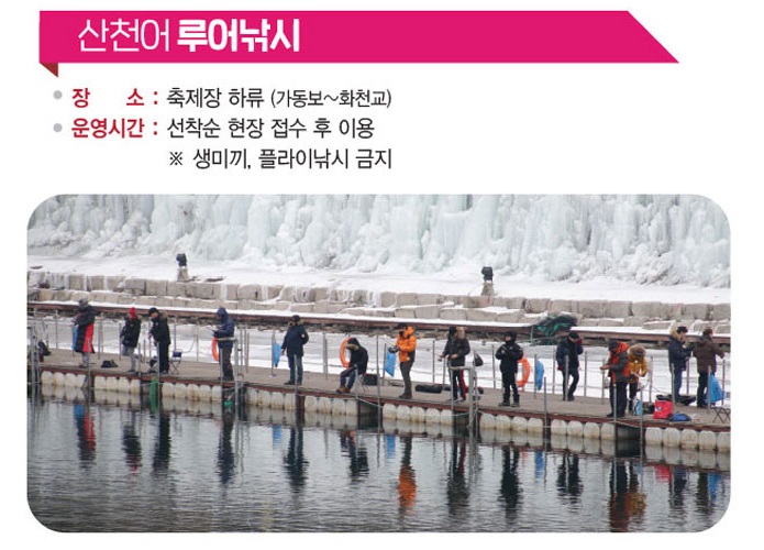 예약낚시터는 축제장의 상류(화천읍 중리 188-1 일원)에 위치