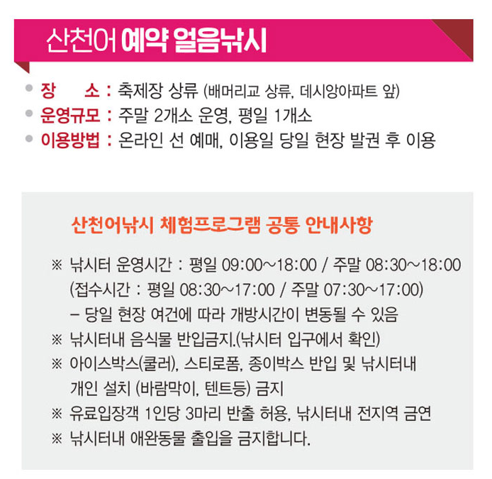 ※ 예약얼음낚시터 이용기간 : 2025년 1월 11일(토) ~ 2월 2일(일)